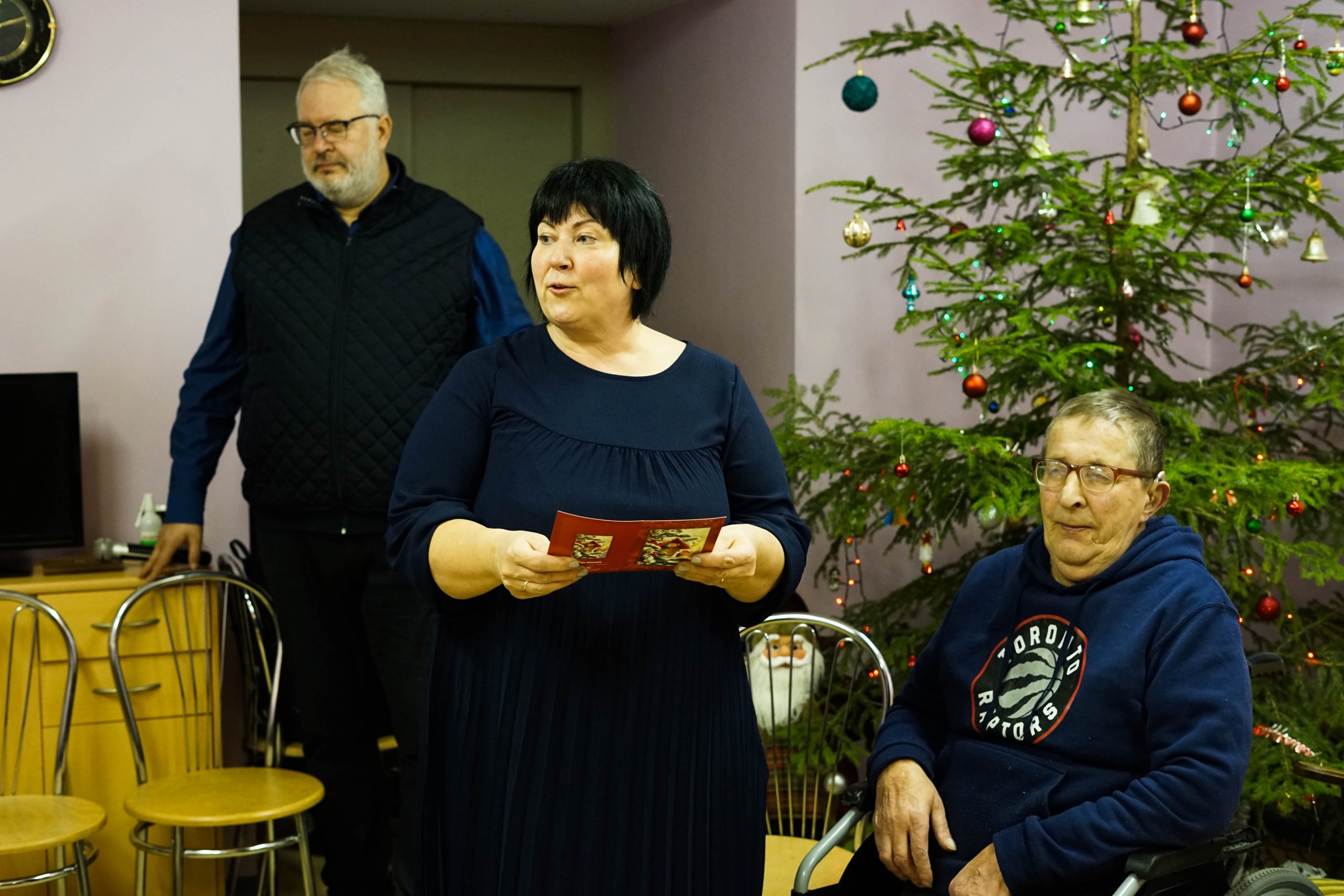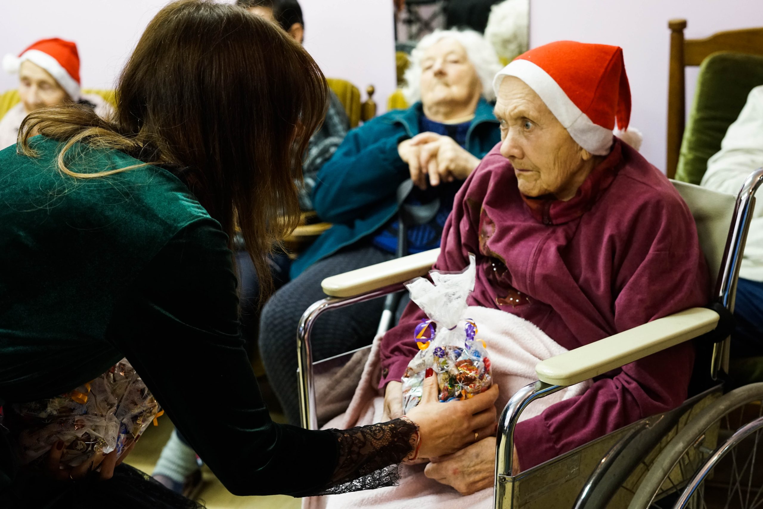 Katrs nodaļas iedzīvotājs tika iepriecināts ar saldumu paciņu, svētku dzejoļiem un jaukām dziesmām. Kuldīgas novada pašvaldības Izpilddirektora vietniece Agnese Buka: “Jūs, mīļie seniori, šajā svētku laikā esat tie, kas palīdz mums apstāties un sajust Ziemassvētku mieru. Mēs no Jums to kopīgi mācāmies, jo Jūsos ir dzīves gudrība, sirds siltums un došanas prieks. Par to paldies!”