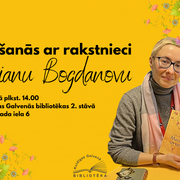 Kuldīgas Galvenajā bibliotēkā notiks tikšanās ar rakstnieci Dianu Bogdanovu Lasma Reinfelde26.04.2023 Aktualitātes