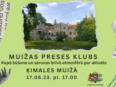 Padures pagasts Sarunu vakars Ķimales muižā 17. jūnijā 17. jūnijā plkst. 17.00 Ķimales muižā, Padures pagastā ikviens laipni gaidīts uz sarunu vakaru “Muižas ...