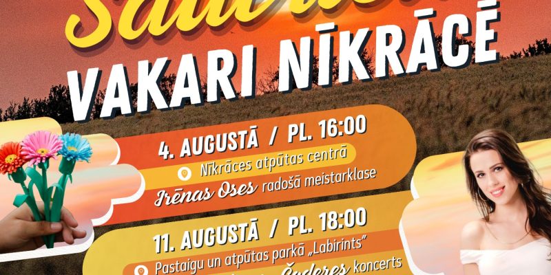 No 4.–26. augustam Nīkrāces pagastā norisināsies nu jau par tradīciju kļuvušie „Saulrieta vakari”. Vasaras krāšņuma un dabas pilnbrieda iedvesmotie „Saulrieta vakari” šogad piedāvās iesaistīties gan radošās aktivitātēs, gan priecēt garu un dvēseli ar sirsnīgiem koncertiem.