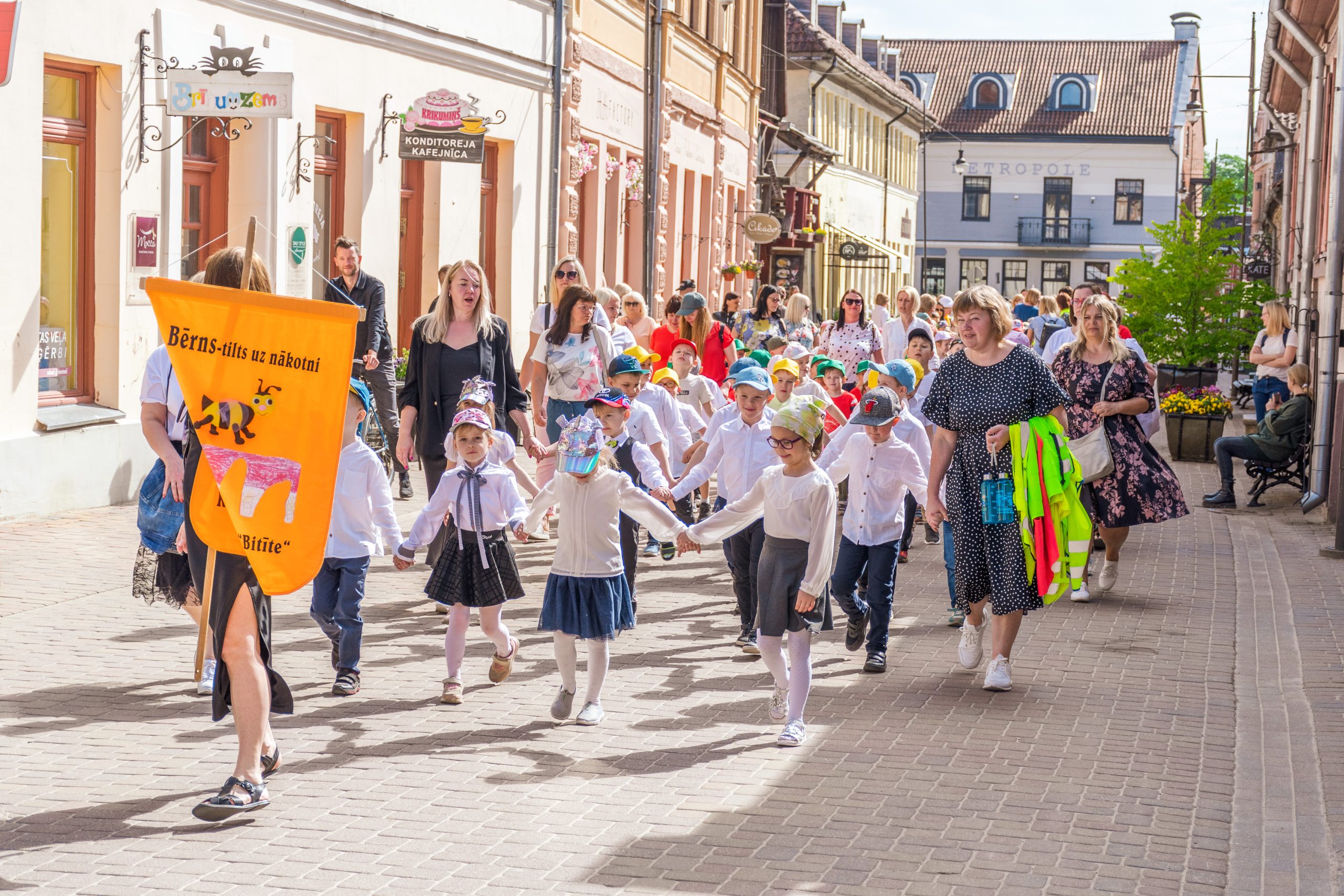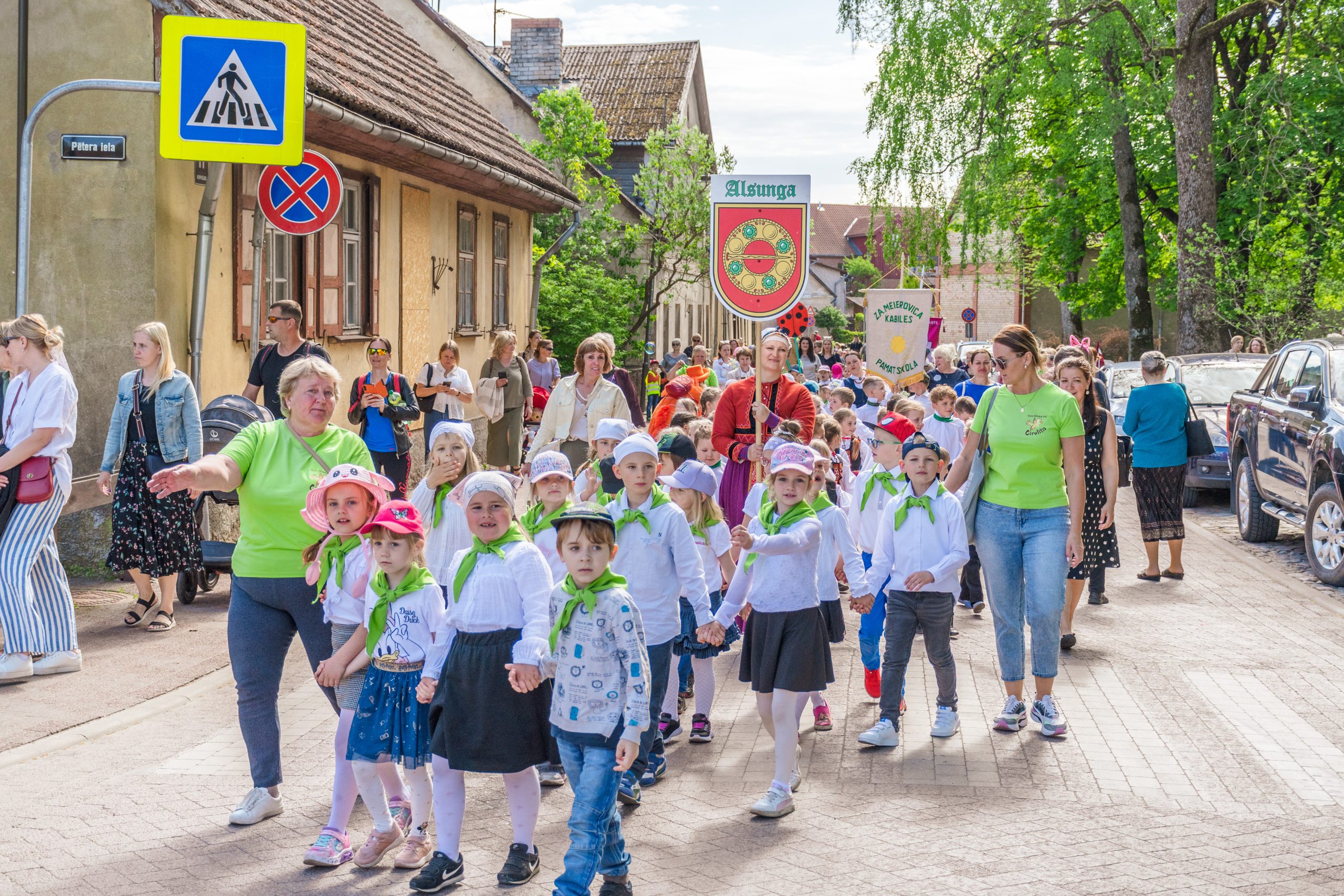 Mazie dziesmu un deju svētki tika ieskandināti ar svētku gājienu. Tas sākās no Liepājas ielas gala (no kajenīcas “Kursas Zeme”), tālāk dalībniekiem virzoties pa Liepājas, Smilšu un Pētera ielām, bet galamērķis – Pilsētas estrāde. Mazos dziedātājus un dejotājus gājienā atbalstīja arī prāvs vecāku un līdzjutēju pulks. Priecīgo brīdi, atrašanos un uzstāšanos uz Pilsētas estrādes skatuves, varēja izjust vairāk nekā 400 jaunie dziedātāji un dejotāji.
