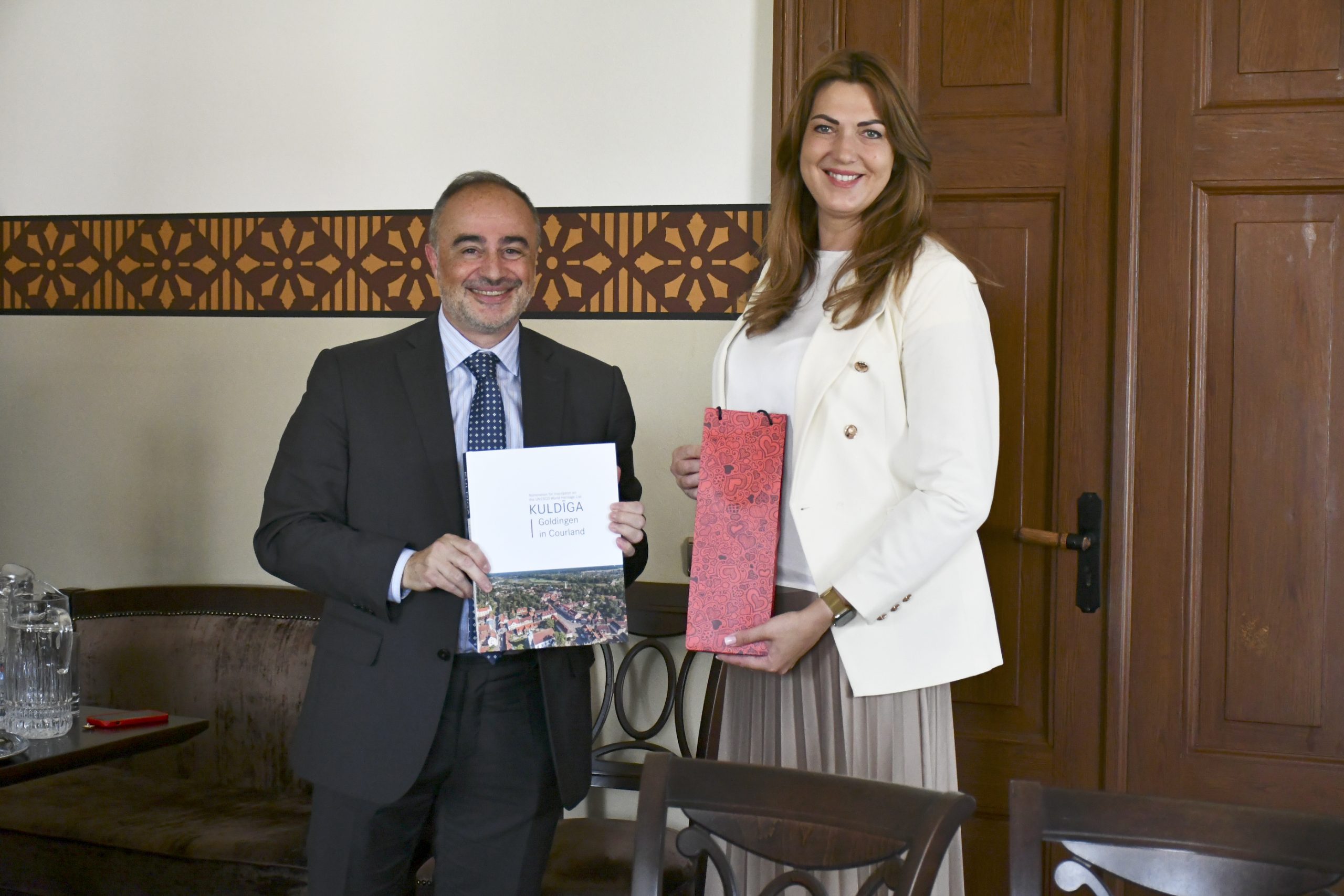 Trešdien, 19. jūlijā,  Kuldīgā vizītē ieradās Itālijas vēstnieks Latvijā Alessandro Monti, lai tiktos ar novada domes vadību – priekšsēdētāju Inesi Astaševsku un vietnieku Arti Robertu, kā arī Kuldīgas novada būvvaldes vadītāju Janu Jākobsoni.  Tika pārrunāti jautājumi, kas saistīti ar pilsētas paveikto ceļā uz UNESCO un gaidāmo komitejas balsojumu septembrī, kā arī uzņēmējdarbību novadā un nākotnes sadarbības iespējām.