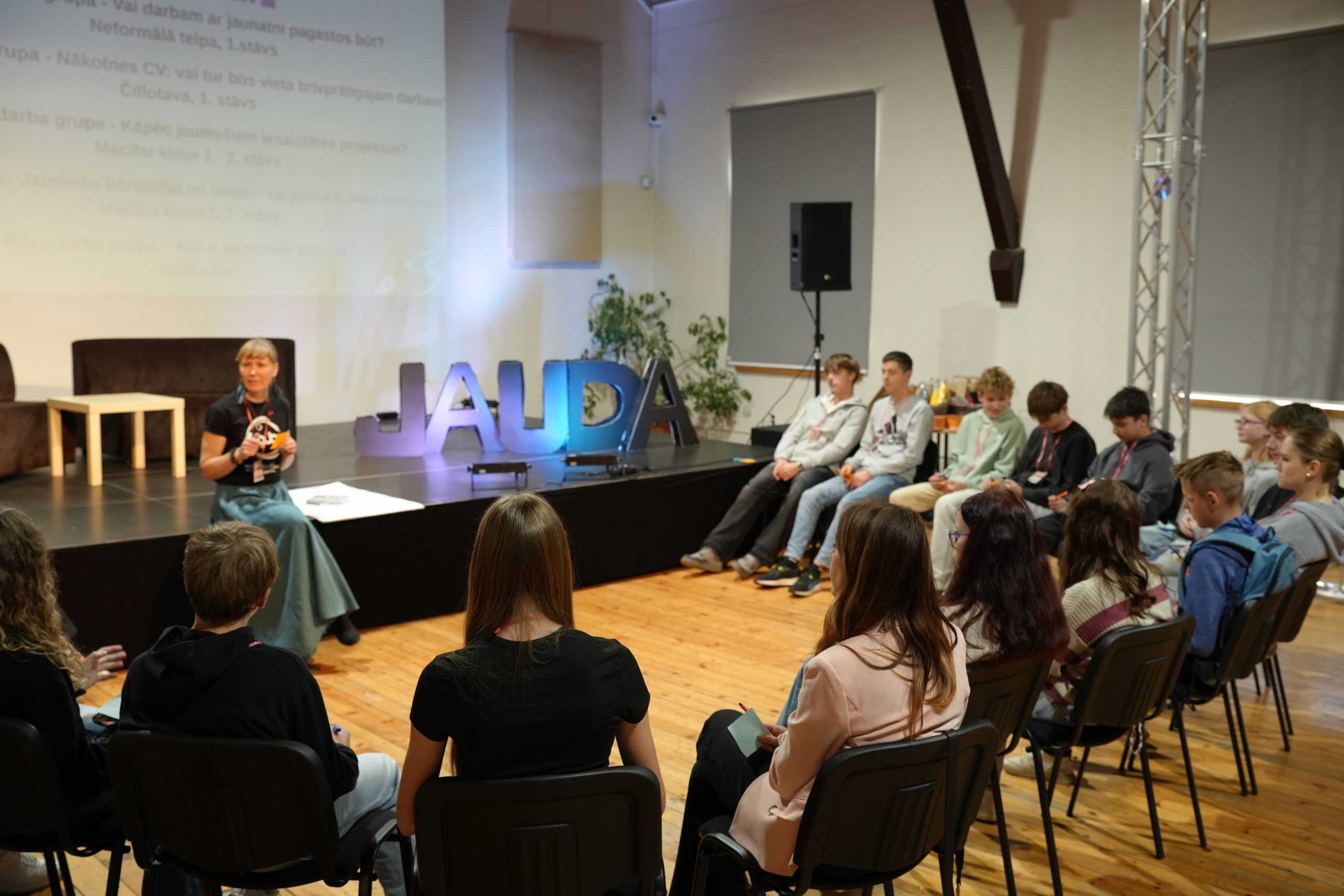 Dienas gaitā jaunieši piedalījās diskusijās, darbnīcās un pieredzes apmaiņā par tēmām, kas saistītas ar jauniešu iespējām un nākotni Kuldīgas novadā — brīvprātīgo darbu, jaunatnes politiku, līdzdalību pagastos, jauniešu interešu pārstāvību un viņu iespējām ietekmēt lēmumu pieņemšanu, kā arī par iesaisti projektu īstenošanā.