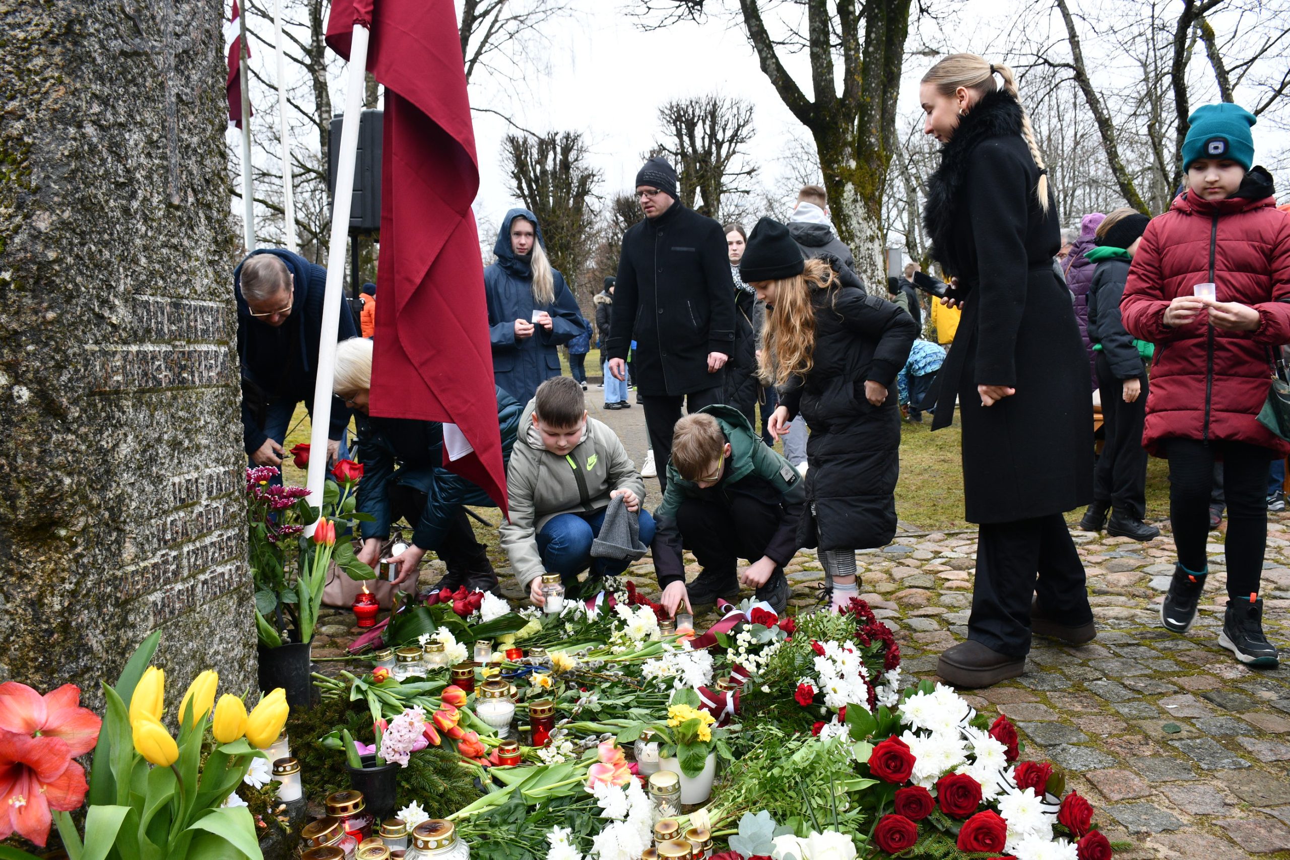- Lēnās komunistiskā genocīda upuru piemiņas brīdis, ziedu un svecīšu nolikšana pie represēto piemiņas akmens norisināsies 12.45.