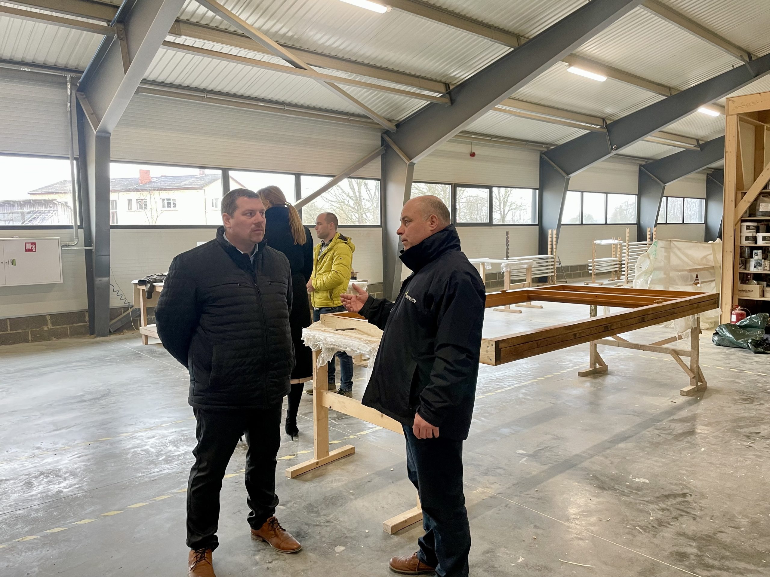 Pie uzņēmējiem viesojas Kuldīgas novada domes vadība – priekšsēdētaja Inese Astaševska un vietnieks Artis Roberts, lai pārrunātu ieceres un izaugsmes plānus. “Laimdotas” nodarbina līdz pat 60 darbiniekiem, no kuriem lielākā daļa ir novadnieki, kas šeit strādā jau kopš uzņēmuma dibināšanas dienas. “Mēs strādājam klientiem, kuri meklē dabisku materiālu mūžīgo skaistumu un kvalitatīvus risinājumus, kuros dominē unikalitāte un izsmalcinātība. Pasaulē, kurā valda rūpnieciskā ražošana, piedāvājam personalizētu pieeju klientu vajadzībām un viņu mājām.” Savas vērtības iezīmē uzņēmēji.