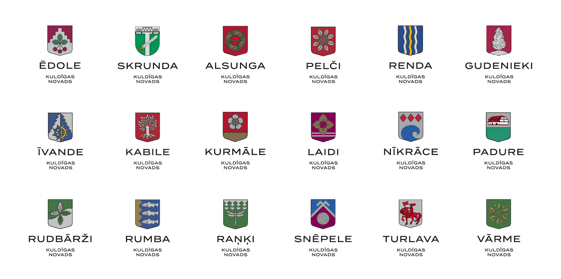 Kuldīgas novada pilsētu un pagastu ģerboņi