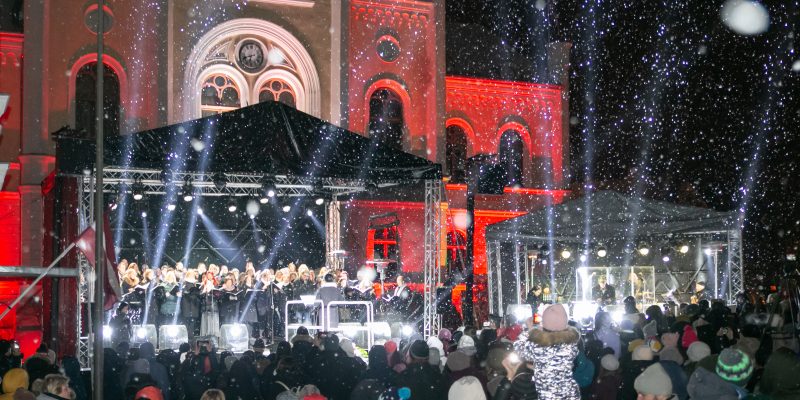 Stiprinot kopības sajūtu, arī šogad Latvijas Republikas proklamēšanas dienā, 18. novembrī plkst. 17:00, Kuldīgas Rātslaukumā visus svētkos ar sirsnīgu koncertu sveiks Kuldīgas novada kopkoris. Šogad svētku sajūtu radīs ne tikai skanīgās novadnieku balsis, bet arī patriotiskā noskaņā sapostā pilsēta un Latvijas karoga krāsās izgaismotā Ventas rumba, kas iemirdzēsies no plkst. 17:00 līdz 22:00.