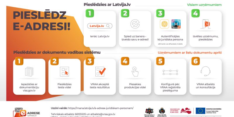 Oficiālā elektroniskā adrese jeb e-adrese no 2023. gada 1. janvāra būs obligāta visām juridiskajām personām –uzņēmumiem, biedrībām, nodibinājumiem, arodbiedrībām un citiem reģistros reģistrētiem tiesību subjektiem Latvijā. E-adrese ir drošas saziņas pakalpojums – uzņēmuma digitālā pastkastīte, kuru juridiskas personas var izveidot divos veidos – portālā Latvija.lv vai integrējot risinājumu sava uzņēmuma dokumentu vadības sistēmā, atgādina Vides aizsardzības un reģionālās attīstības ministrija (VARAM) programmas “Dari digitāli “ ietvaros un aicina neatlikt e-adreses izveidi uz pēdējo brīdi.
